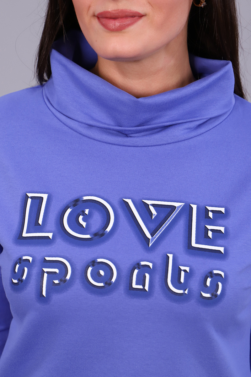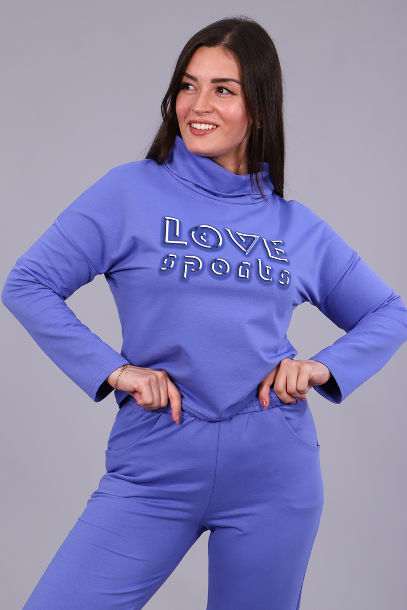 Молодёжный костюм с 3Д принтом из футера 2-х нитки с лайкрой. Толстовка укороченная, спущенное плечо, длинный рукав, шикарный воротник-хомут. Брюки на распошитом поясе, прямые с удобными карманами. Костюм в спортивном стиле комфортный, практичный, приятный к телу для дома, активного отдыха, прогулок.