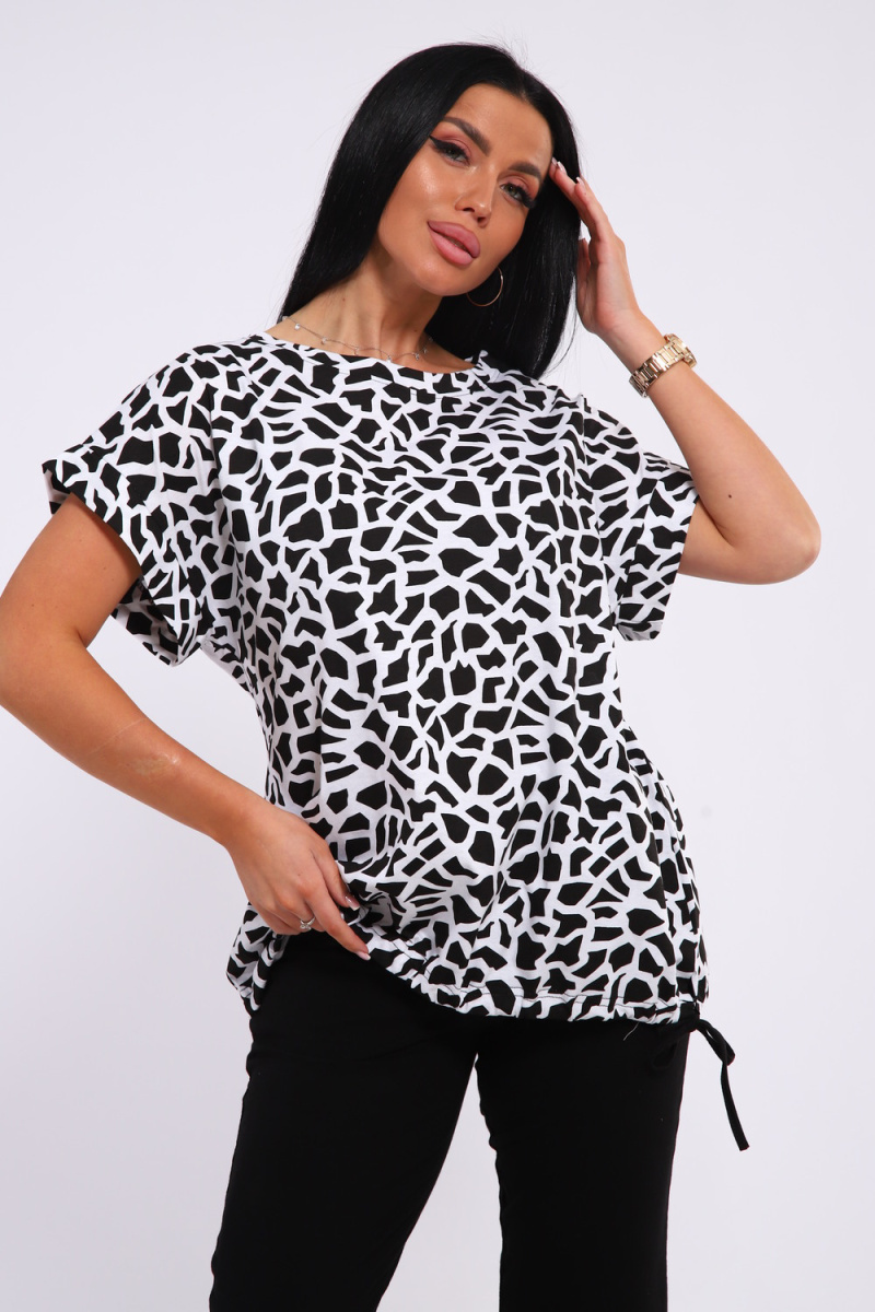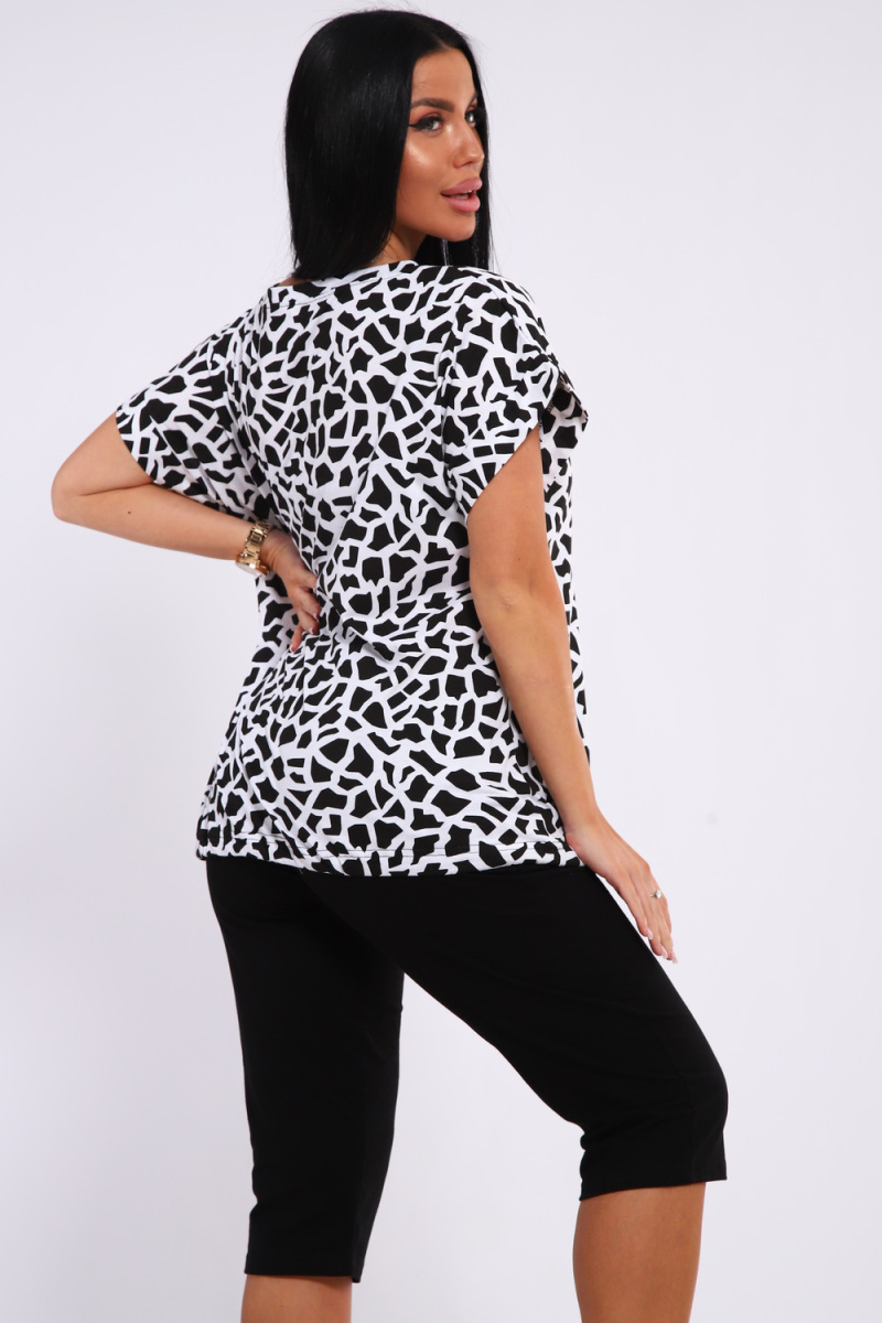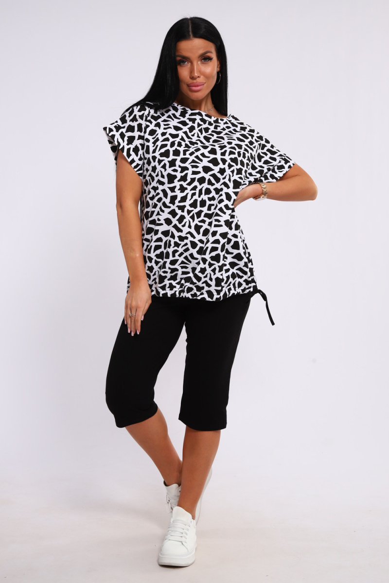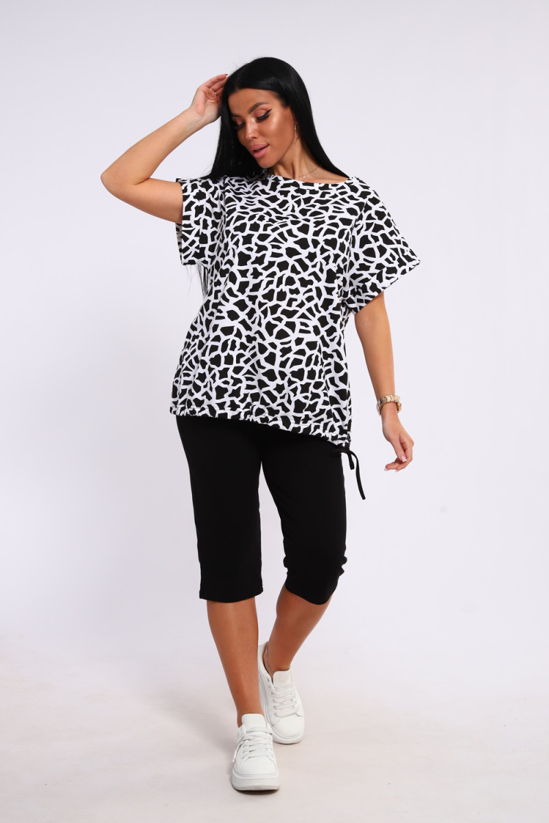 Костюм футболка и бриджи. Футболка свободного кроя, плечо спущенное с манжетом, низ на завязках. Бриджи на резинке